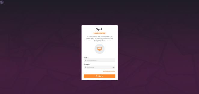 The local network login page is only accessible by devices that are on the same subnet as the PhyzBatch. Once logged in you have the ability to change sort parameters, run the machine, look at & edit your sort history, and manage your account. You cannot log in to this site remotely unless you set up your device to be accessible remotely, e.g. using Chrome Remote Desktop.