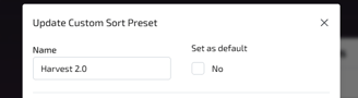 You can also set custom sorts to your default sorting options via the Manage Sort Preset button. This button will appear when a custom sort is selected via the Sort Preset dropdown.